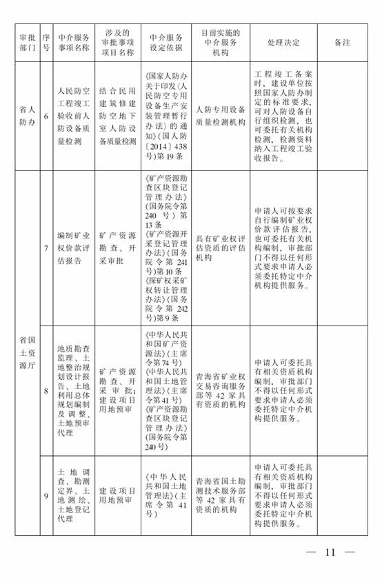 附件:青海省人民政府决定第二批清理规范的省政府部门行政审批中介服务事项目录(共计34项)