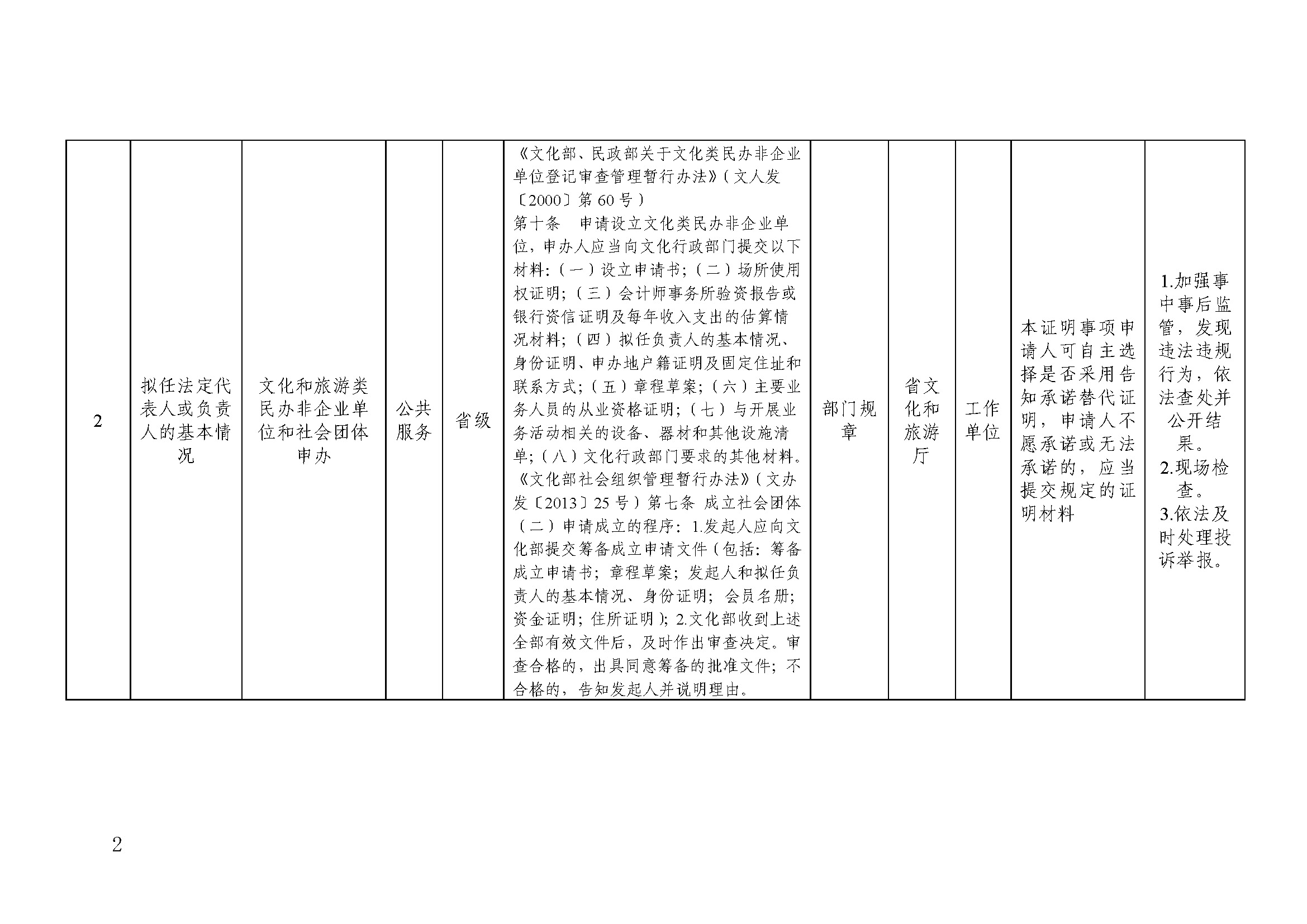 青海省文化和旅游厅实行告知承诺证明事项目录