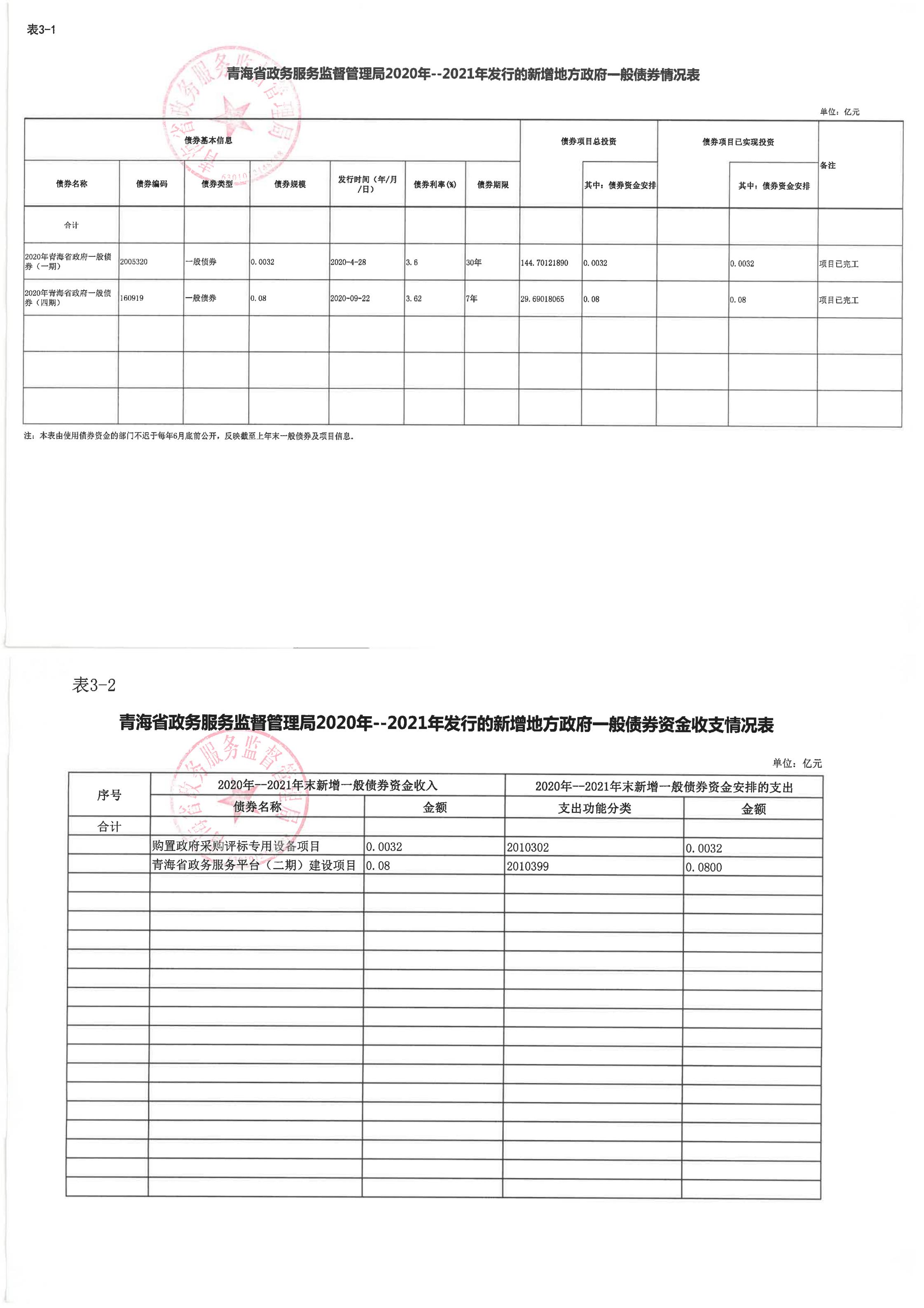青海省政务服务监督管理局2020年-2021年新增地方政府债券存续期内信息公开