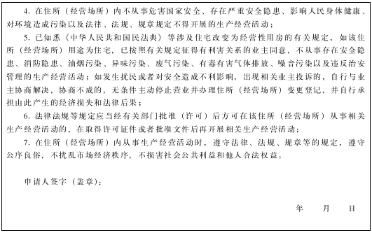 二、《青海省市场主体住所(经营场所)自主申报承诺书》填写说明
