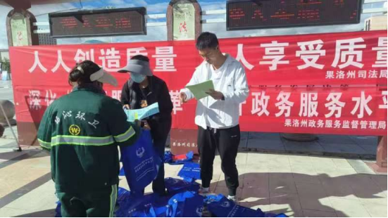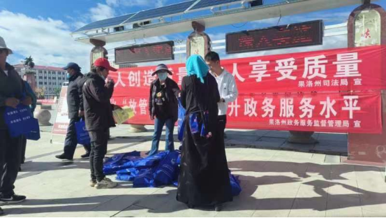 果洛州政务服务监督管理局以“深化放管服改革、提升政务服务水平”为主题,在州格萨尔广场集中开展宣传活动