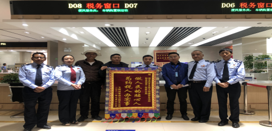 近日,玉树州政务服务中心第二税务分局所在的税务窗口,收到了来自玉树州雪峰出租车公司法定代表人班久一行送来的印有“做人民的贴心人,为纳税人办实事”的锦旗。
