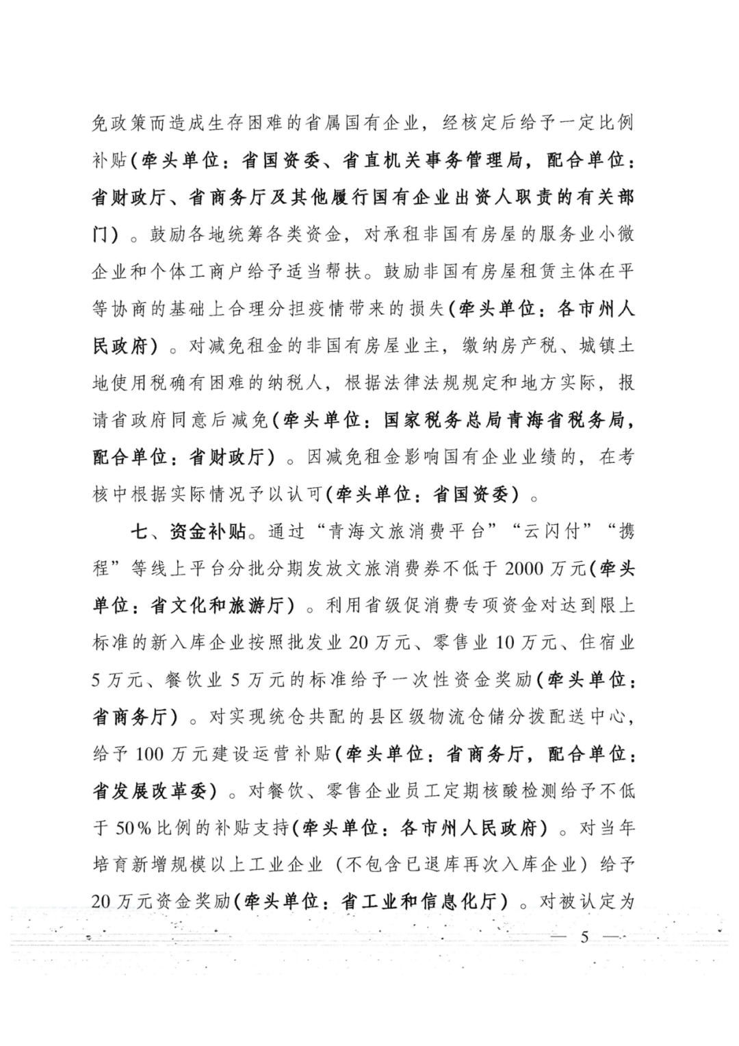 关于印发青海省助企纾困和支持市场主体发展十条措施的通知
